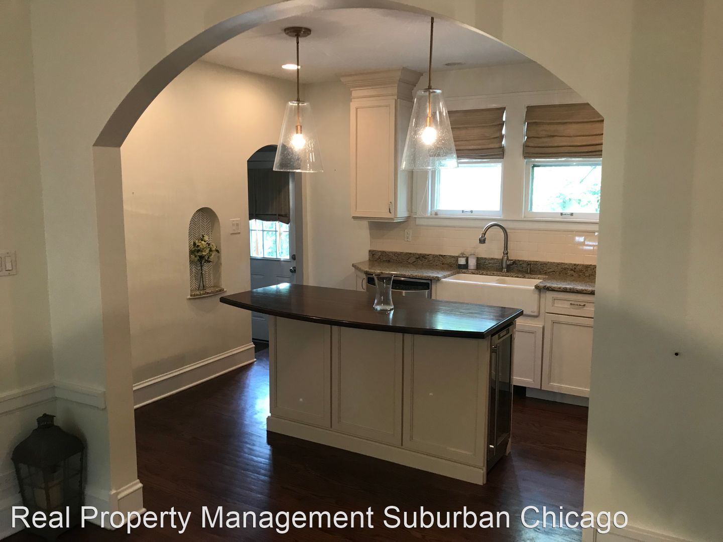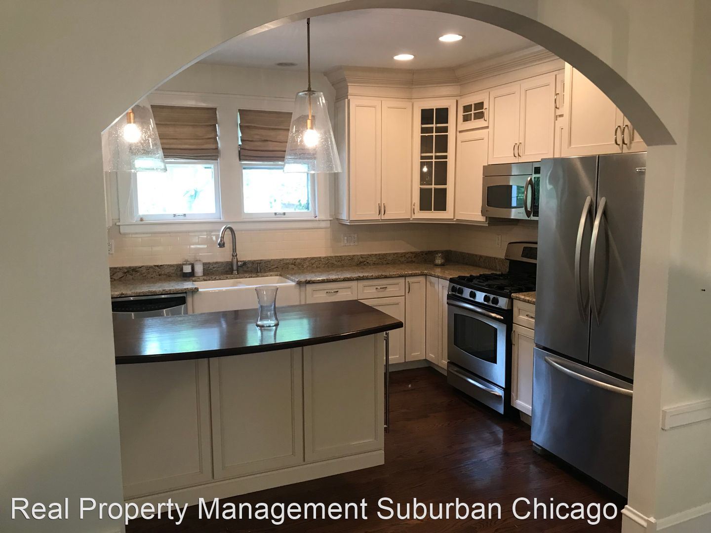 Elegant and timeless home Arlington Hts. Pioneer Park - Timeless Tudor welcomes you in with grand entry, brick paver driveway and mature landscape. Three bedroom, two bath home with with elegant hardwood floors, arch doorways, beautifully appointed trim & molding with designer lighting throughout home. Large Living room is centered around brick fireplace, French doors lead to private deck with pergola, columns and wide stairs opening to great backyard with stone patio and built in firepit. Fully renovated kitchen features custom cabinetry, granite, stainless appliances, farmhouse sink, center island/breakfast bar with dark hardwood countertop, storage and wine fridge. Kitchen complete with built in pantry to keep you organized. Opening to dining room with new decorator chandelier for all your special celebrations. 2nd floor includes the primary bedroom with French doors to closet with custom built in organizers. Bedrooms 2 & 3 are spacious sized and both have walk in closets! Full hall bathroom updated with elegant fixtures, marble floors, sconce lighting, large vanity and newly tiled tub/shower. Finished basement with rec room, built in bar with sink & fridge. Bonus room in basement for office with large closet. Full bathroom with large shower. Laundry room with counter space and storage. This location is a half block from South Middle School, 5 block walk to downtown Arlington Heights & Metra Station, and just a couple blocks to the award winning Pioneer Park (Swimming/Tennis/Basketball/Baseball/Walking & Running Path and Playground). No smoking/No pets. Renters Insurance Required